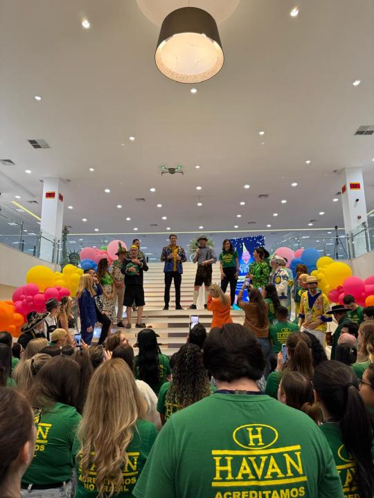 Para homenagear o empresário pelos 63 anos, os colaboradores se vestiram com as fantasias usadas por Hang em diferentes momentos da história da Havan, relembrando sua trajetória marcada pelo entusiasmo e bom humor.
